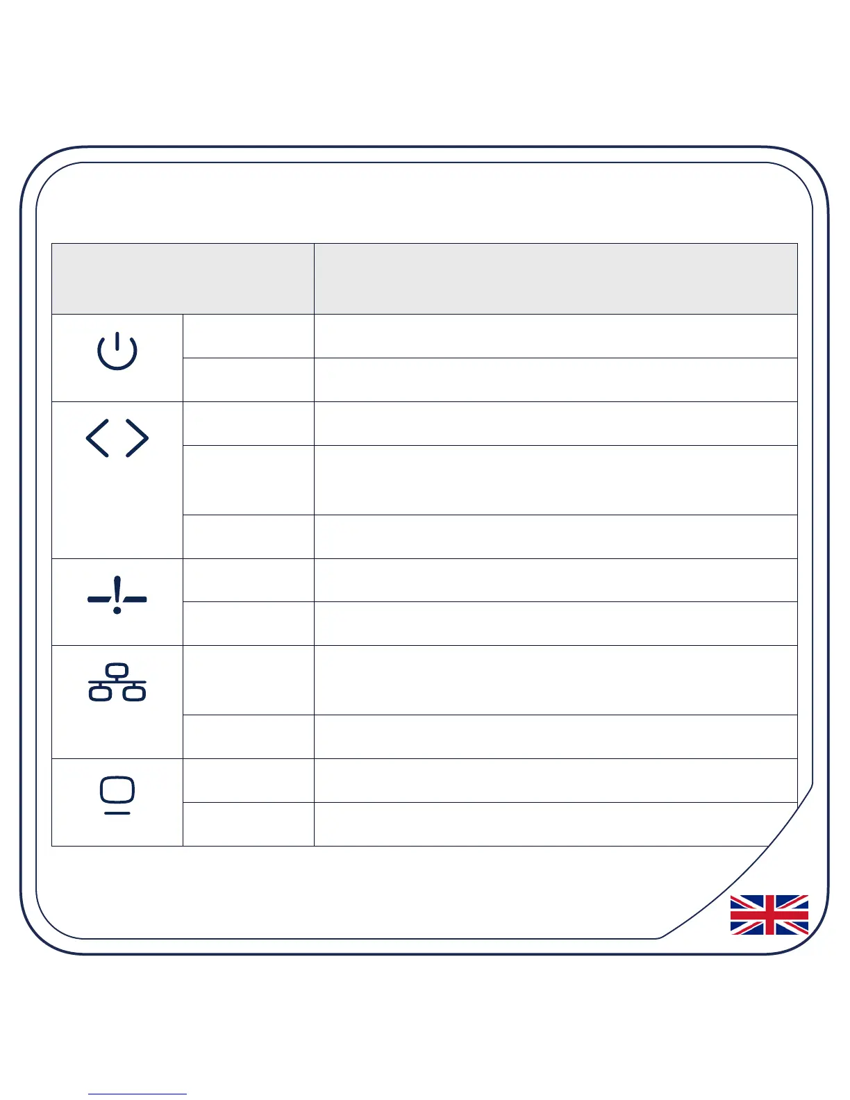 On (green) LAN connected. Flashing green indicates