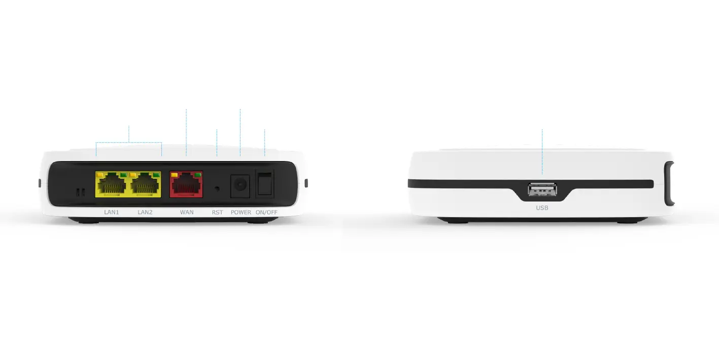 Genexis Pulse EX600 - Port Overview and Reset; Physical Ports Identification; Reset Button Functions