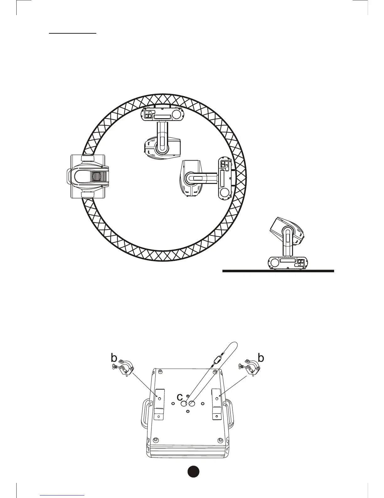 collocate the appropriate clamps(b) to rig with trusses. Must use the