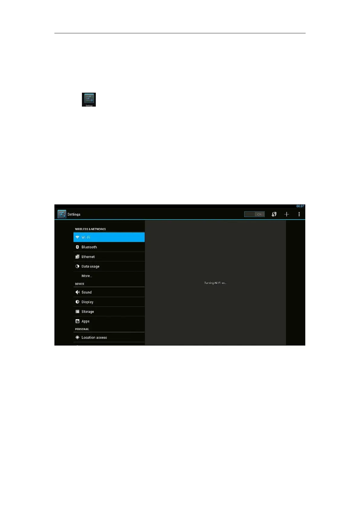 Press “ ON” in Ethernet setting, it will connect to network automatically.