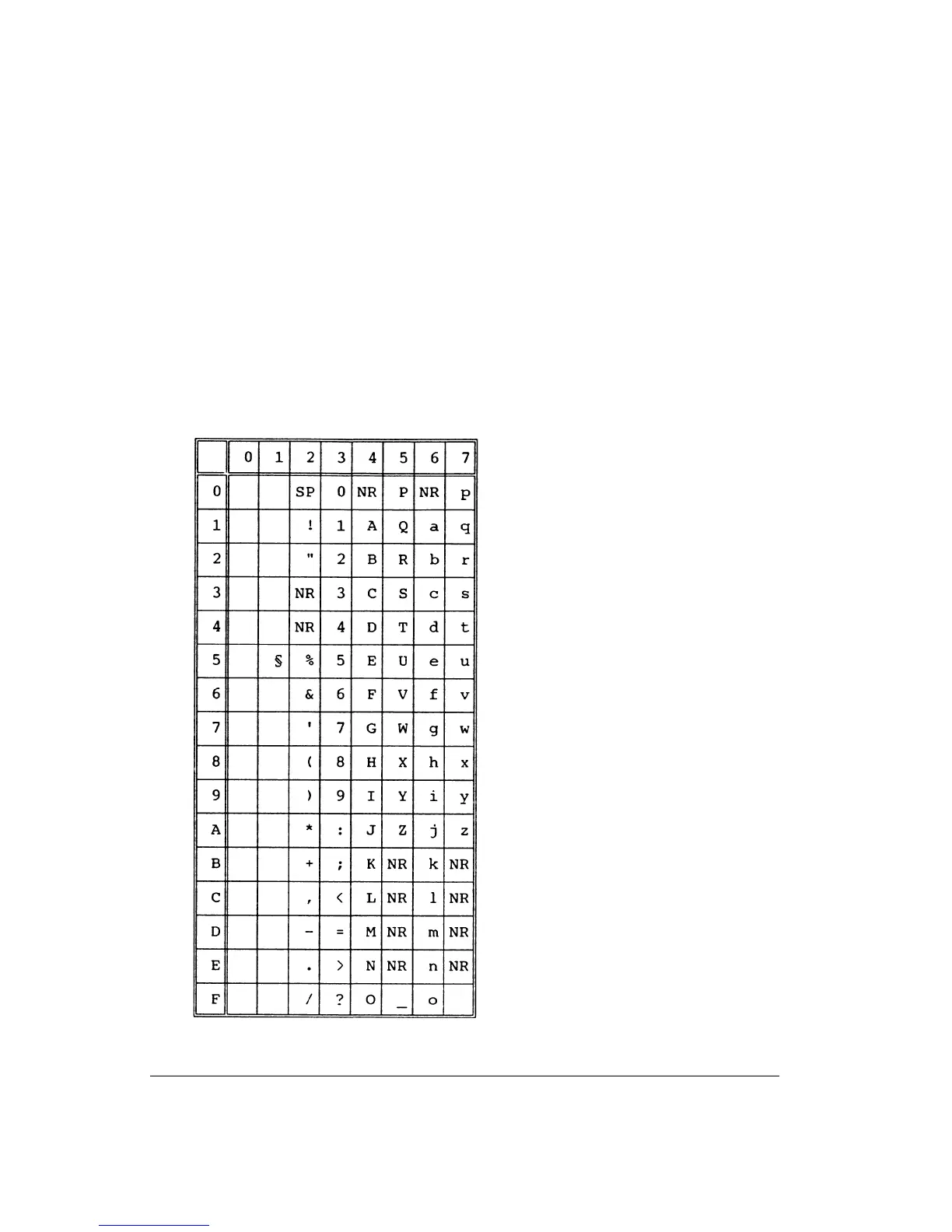 The following table shows characters common to the fifteen “national” character sets. NR