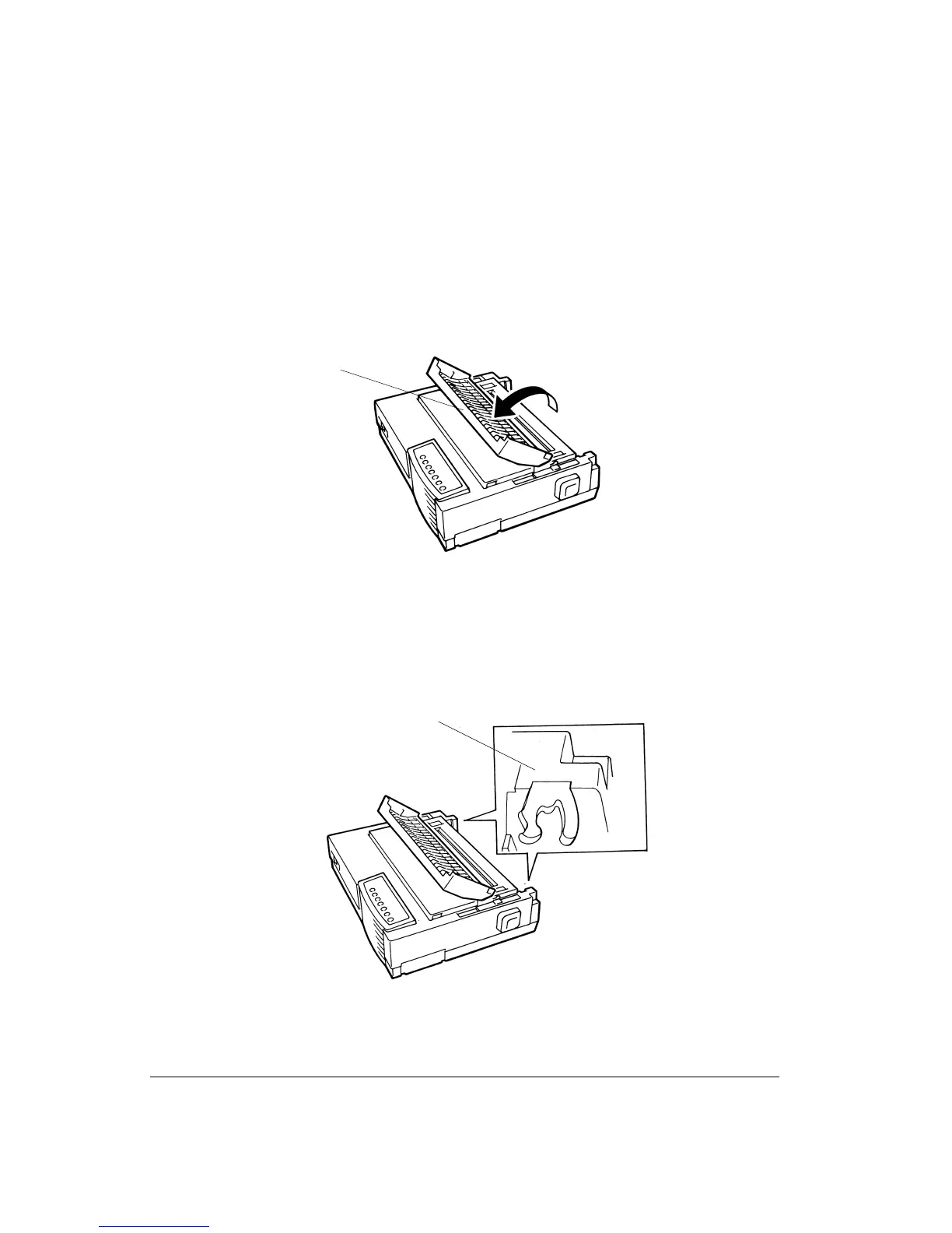 2. Locate the two grooved notches 2 on each side of the top of the printer, behind the top