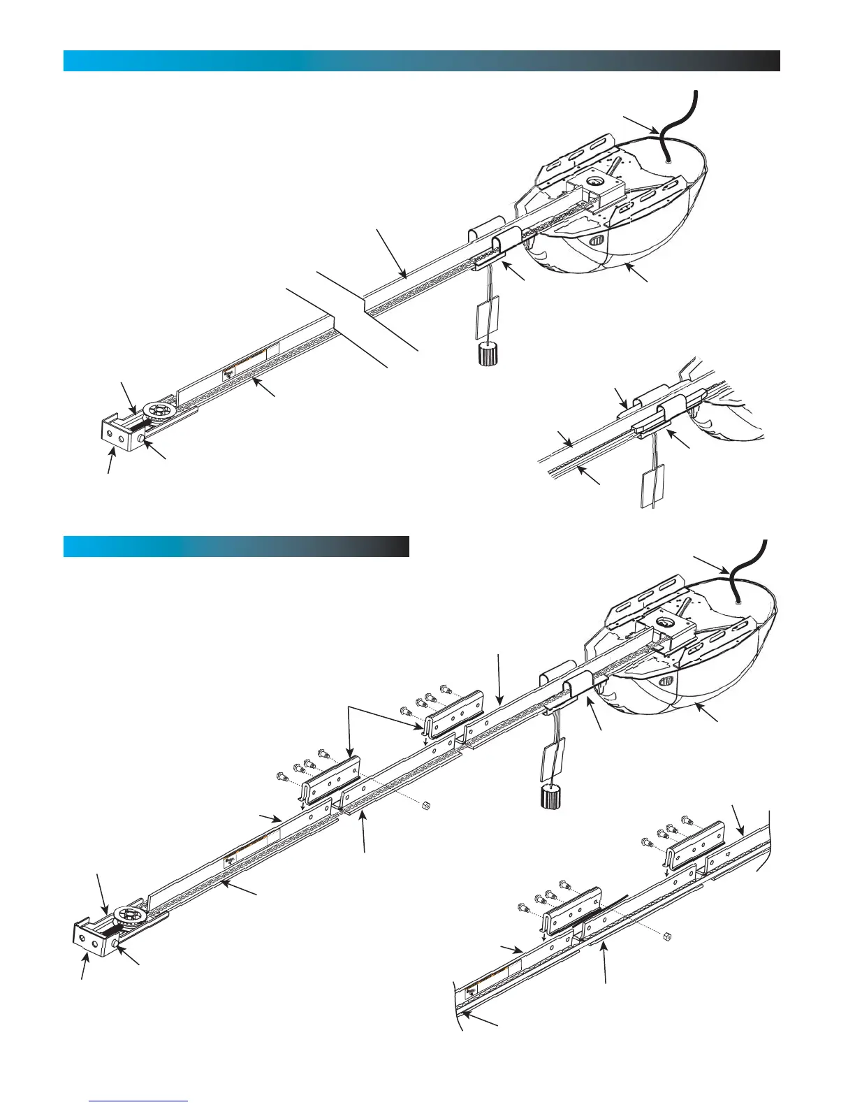 Genie 1022 - 1-Piece Rail Hardware Assembled View; Chain Drive Rail Assembly; 3-Piece Rail Hardware Assembled View; Belt Drive Rail Assembly