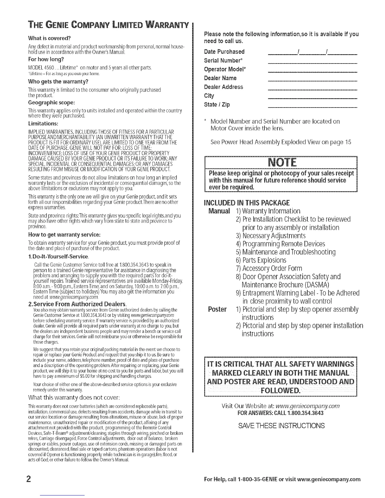 2 For He_p,call 1-800-3GGENmE or visit www.geniecompany.com