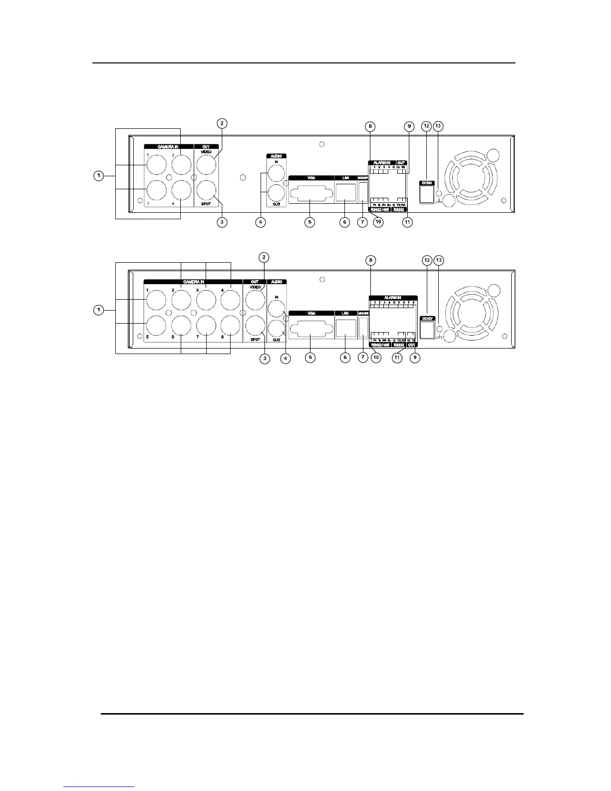 10) RS-422 : For connecting to PTZ camera.