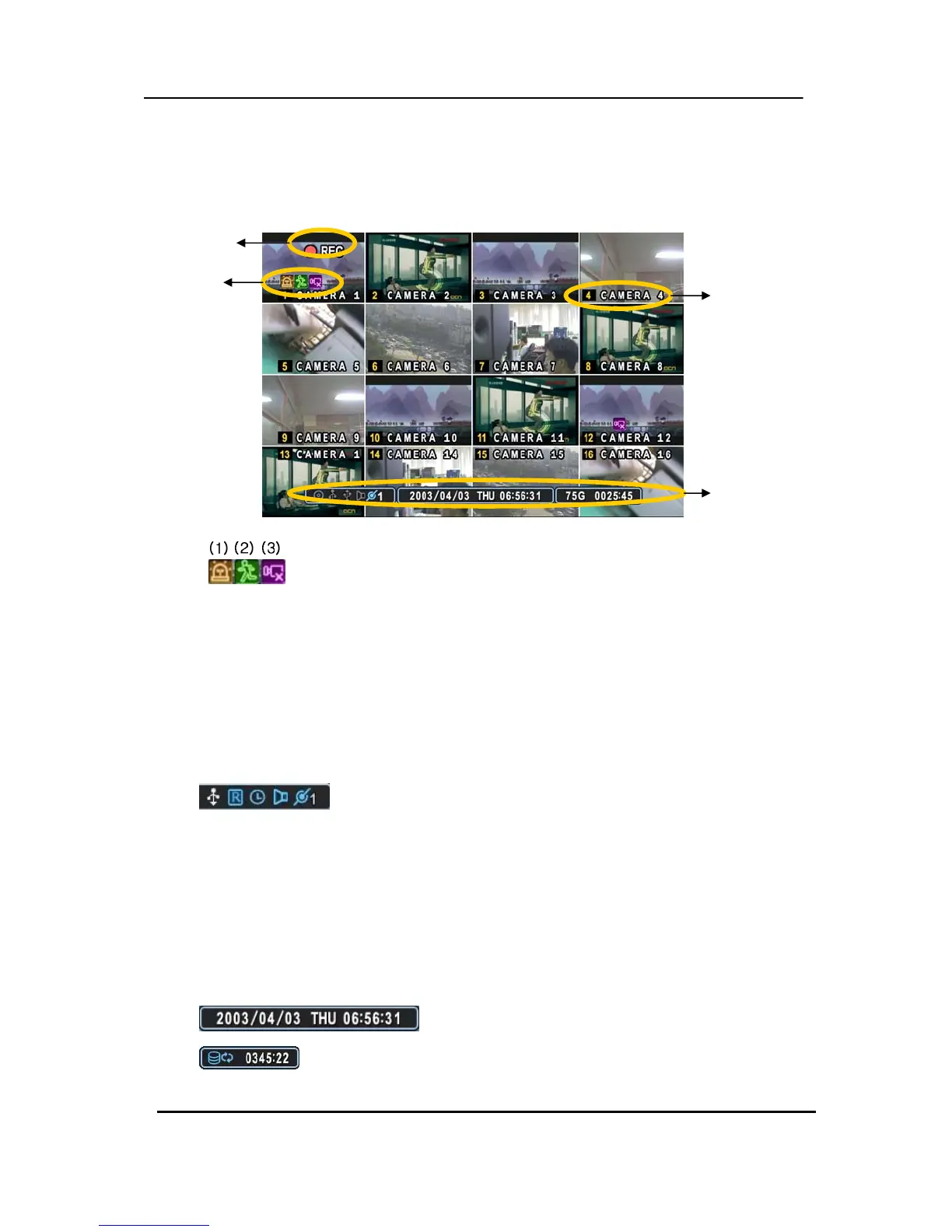 (2) Indicates the DVR is now recording.