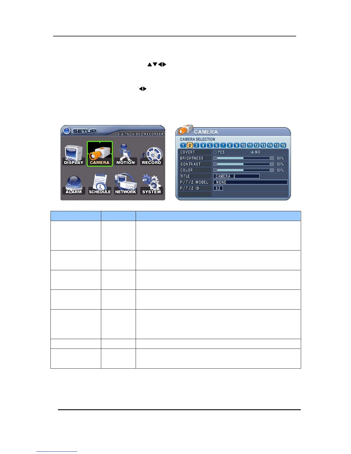 P/T/Z MODEL None y Select P/TZ camera model to control.
