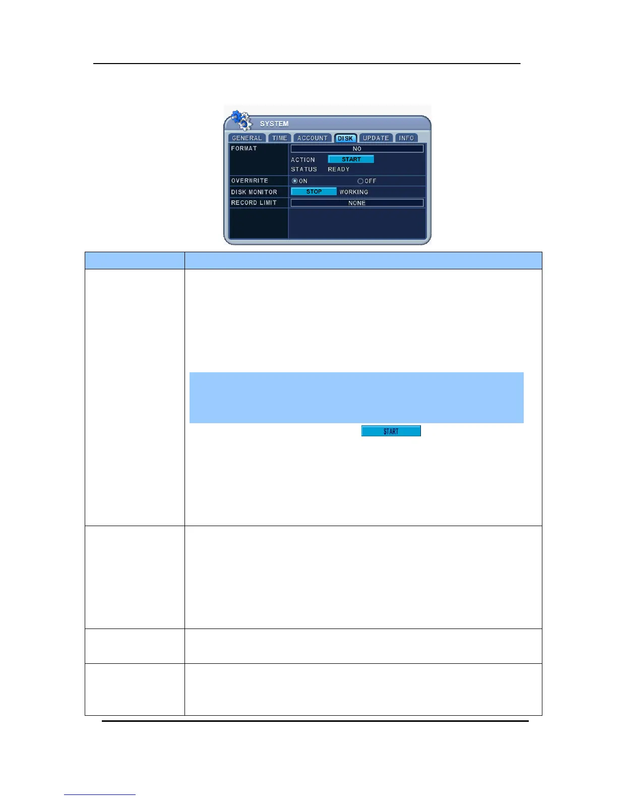 1. Stop the DVR completely before a disk format.