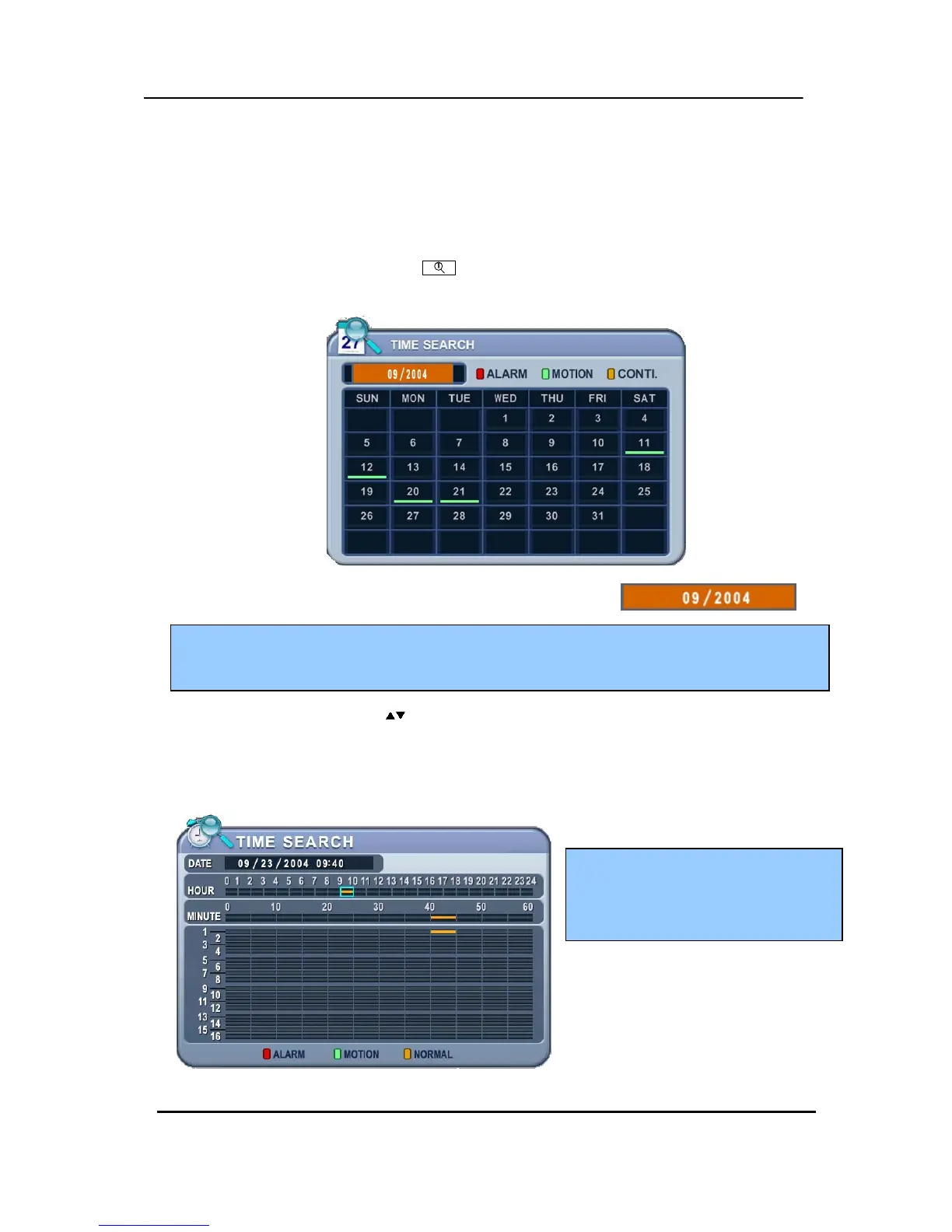 3. Use the Up/Down buttons [ ] to select a “DAY” on the Calendar. Selected data is shown as