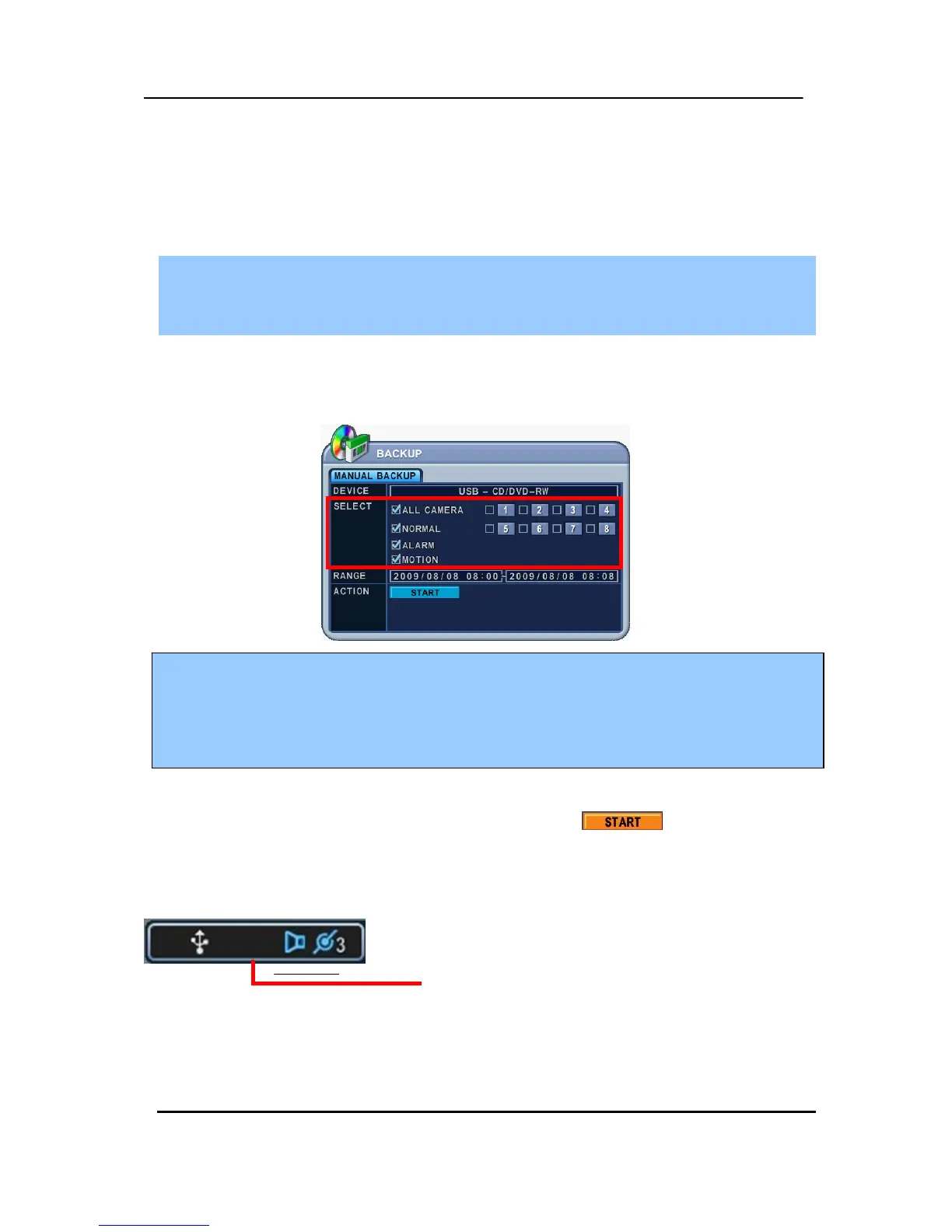 For CD/DVD-RW back up, the SELECT menu option is not available.