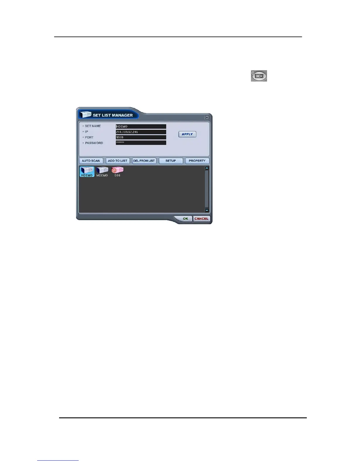 - Set List Manger is mainly used to add or delete DVR’s on the CMS. Click button to start