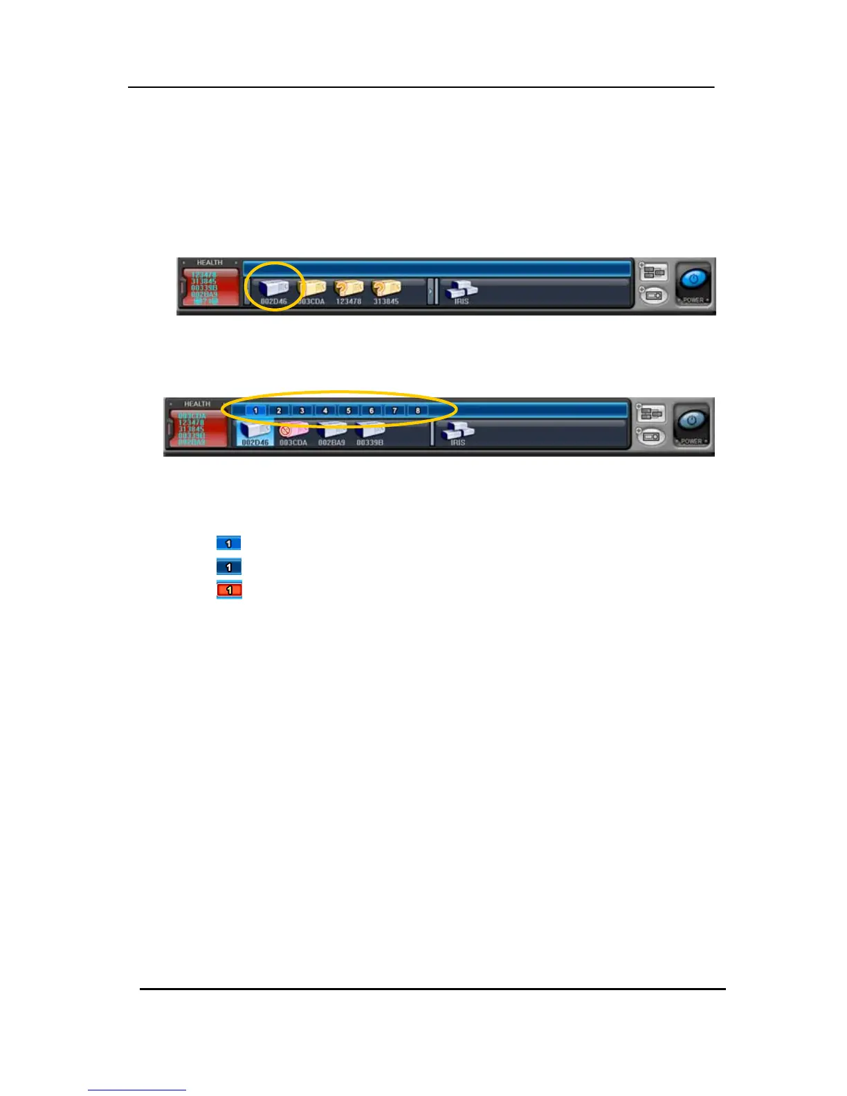 in the DVR window, the Camera Status Bar displays the status of individual cameras. The