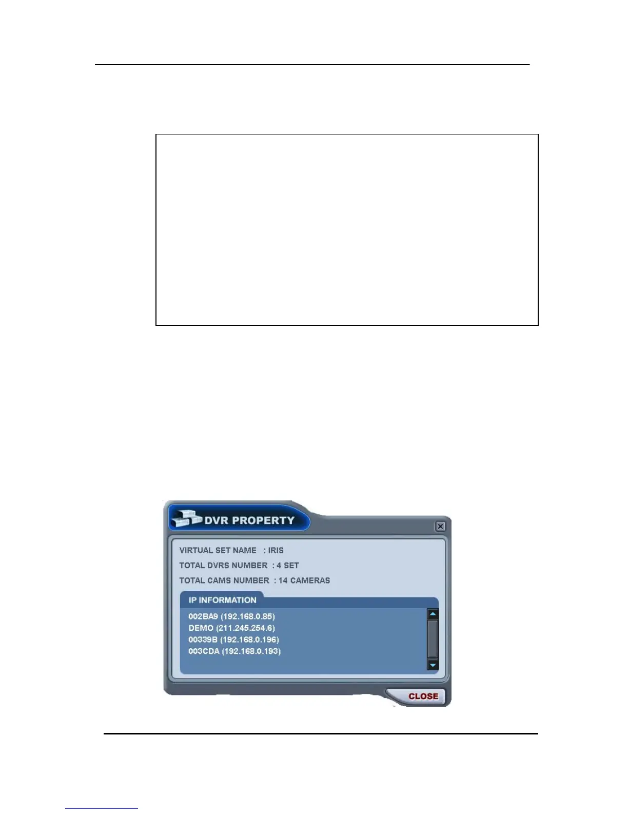 connected DVR’s, total number of selected Cameras and IP information of connected DVR’s.
