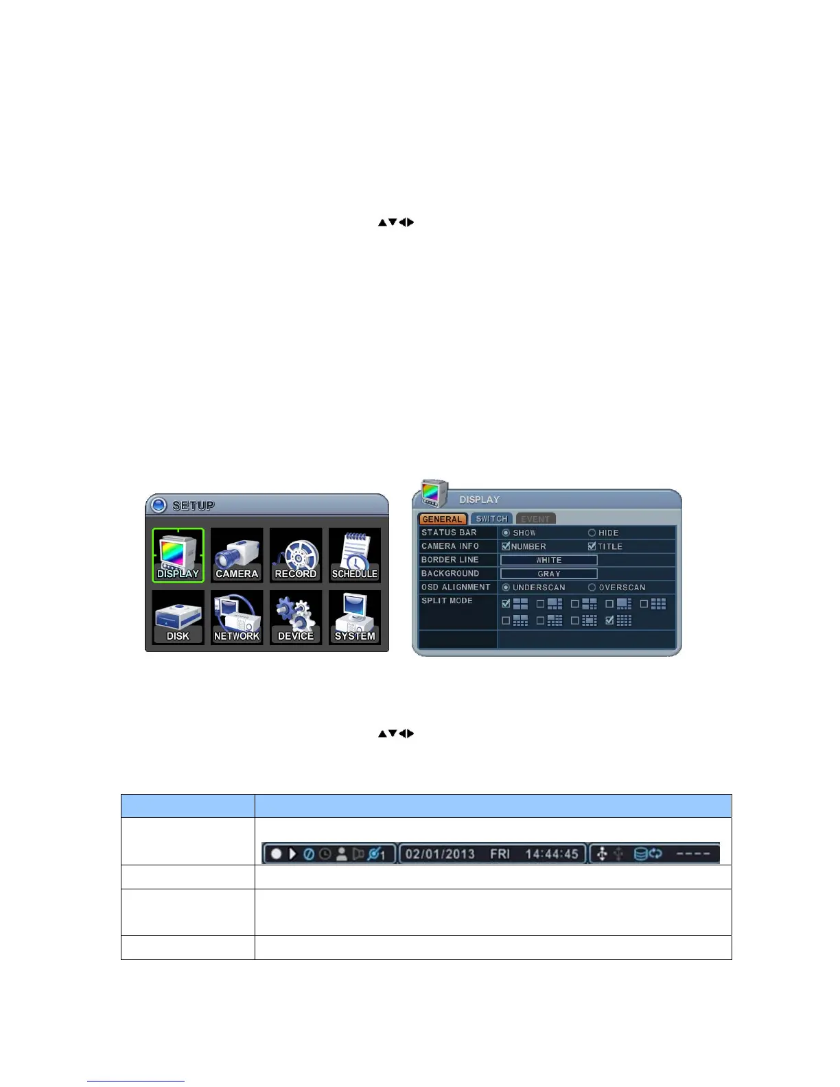 y Select “Show” or “Hide” the status bar on the Main Monitor.