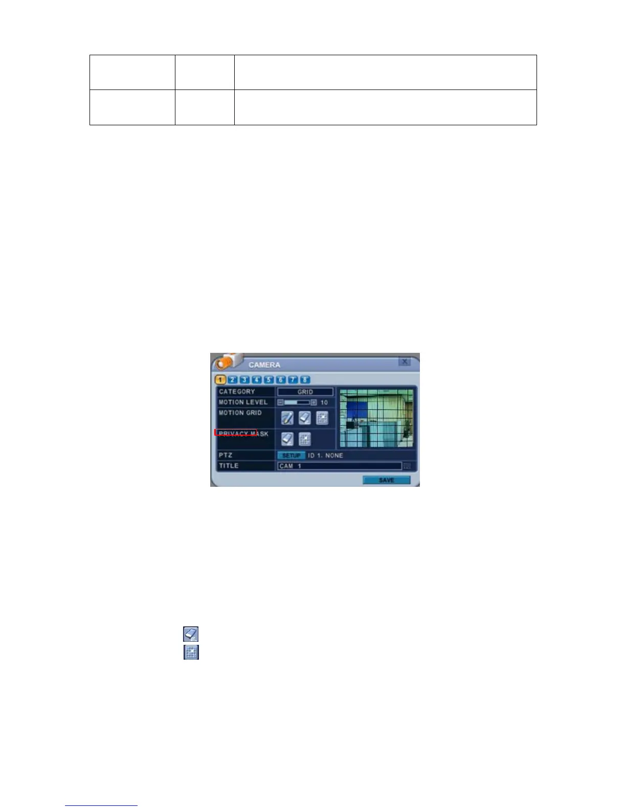 1. Select a Camera number button to configure the mask.