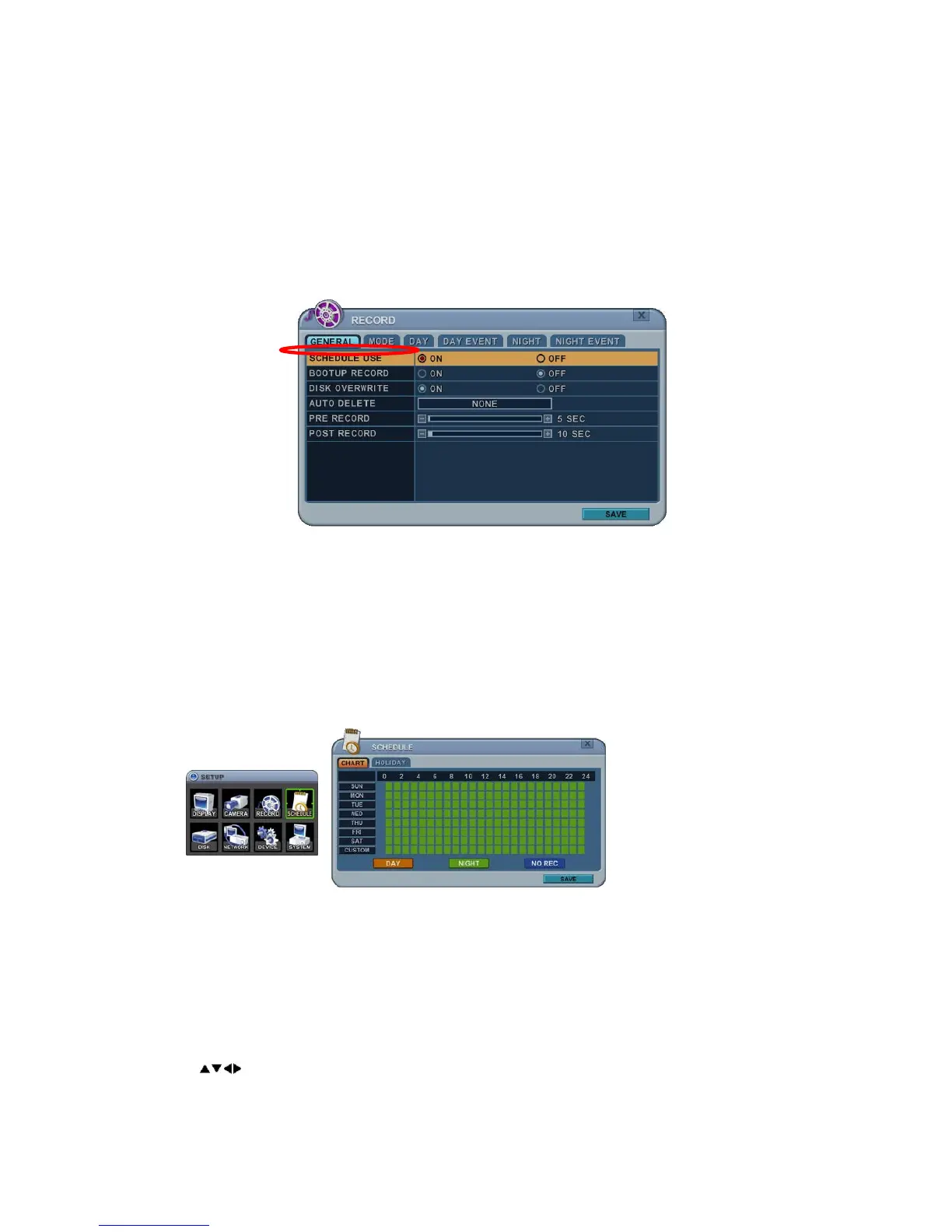events are enabled. By selecting Schedule Use “ON” Record setup, Night Mode