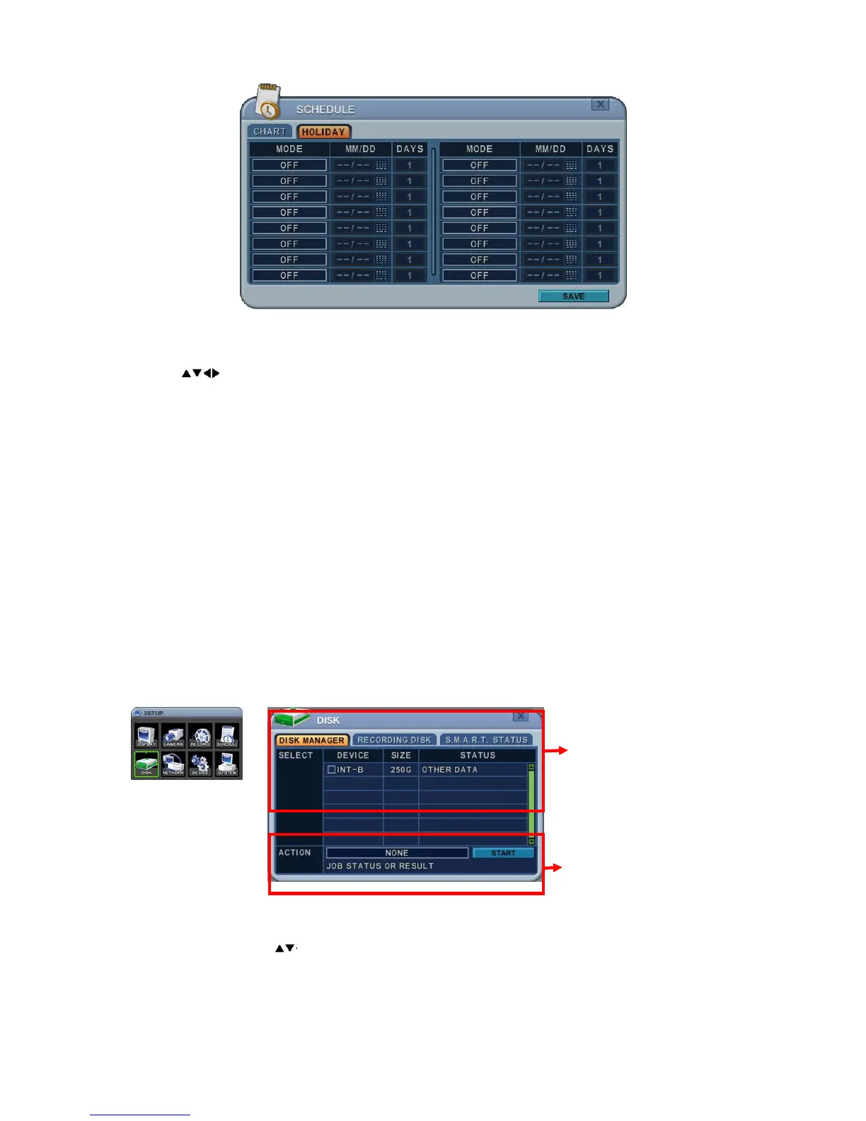 z Mode: [OFF] Æ[Day] Æ [Night] Æ[No Rec] Æ [Sun~Sat]
