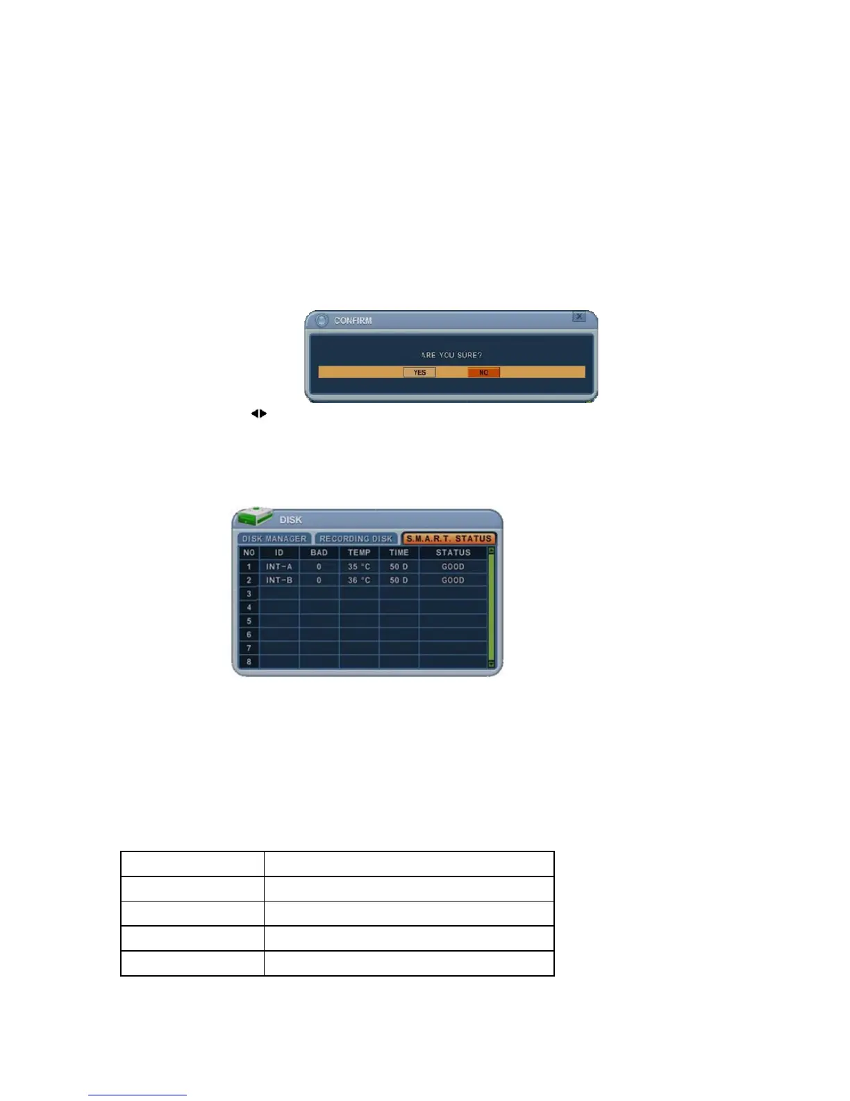 This displays HDD information, such as bad sector, temperature, HDD running