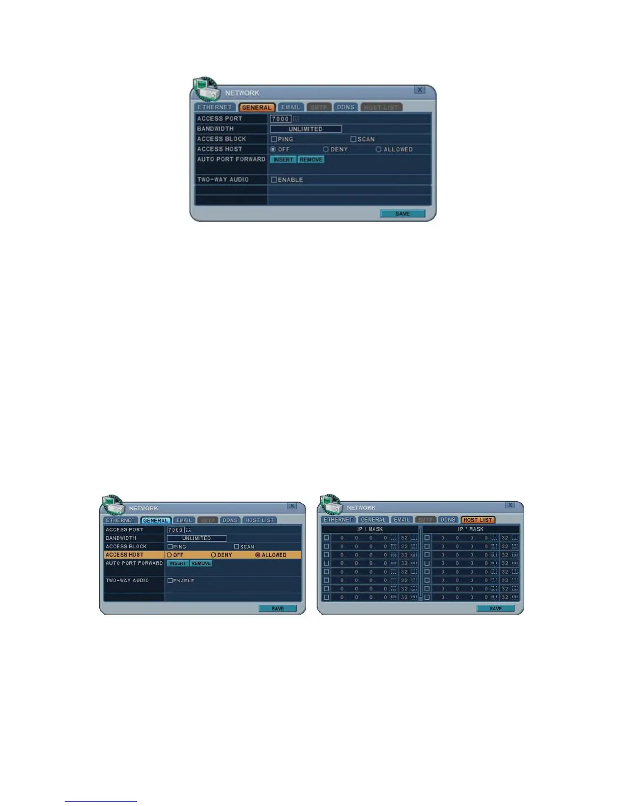 5. Access Host and Host List: Allows you to access or deny access to specific