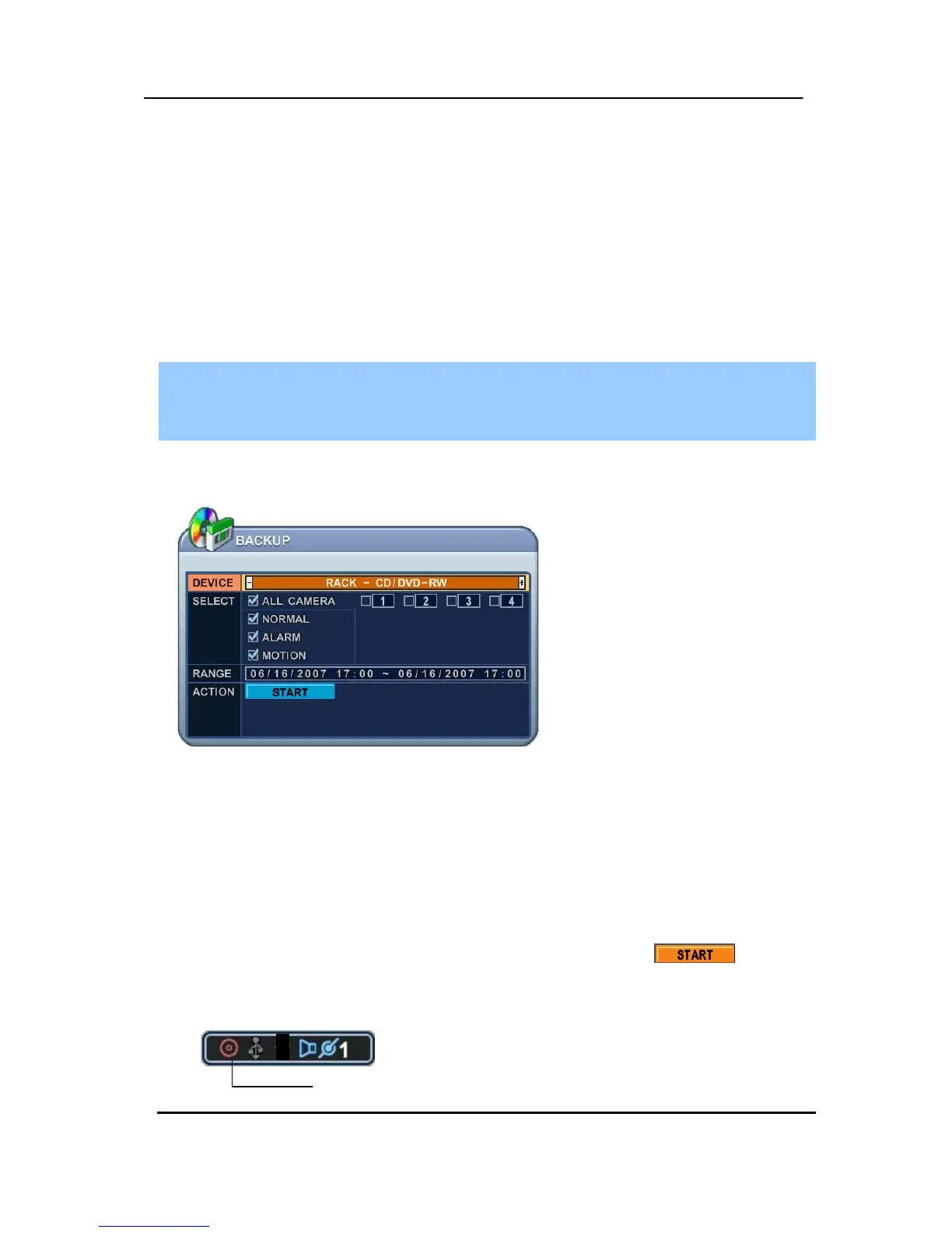 * CD indicator will be changed to BLUE Color that the backup is in session.