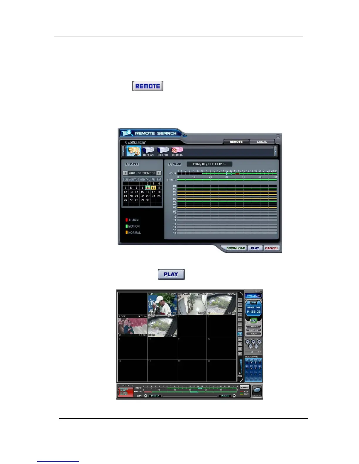 ② Remote Search shows a graphical representation of the recorded video
