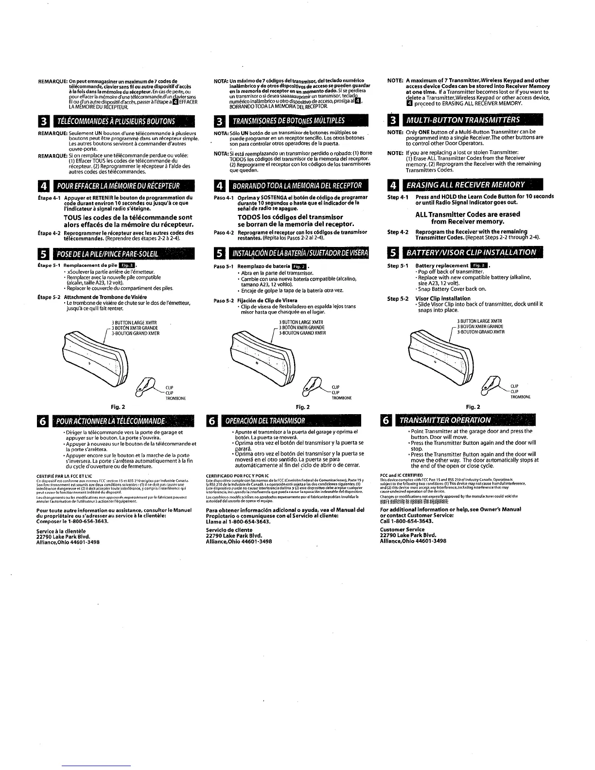 Genie Intellicode 1024 - Erase Receiver Memory; Press and Hold Learn Code Button; Reprogram Receiver with Remaining Codes; Battery and Visor Clip Installation