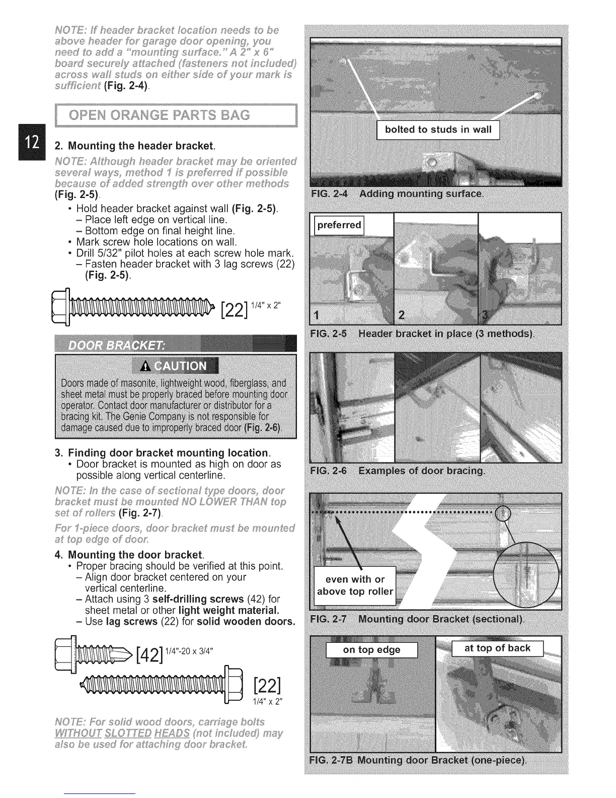 • Hold header bracket against wall (Fig. 2-5).