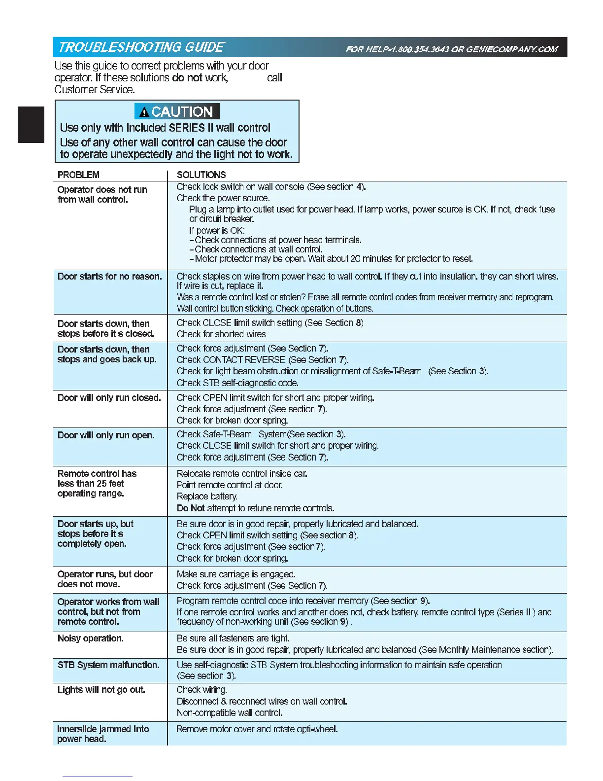Genie Pro Stealth - Troubleshooting Guide; Wall Control Compatibility; Operator Not Running from Wall Control; Unintended Door Starts