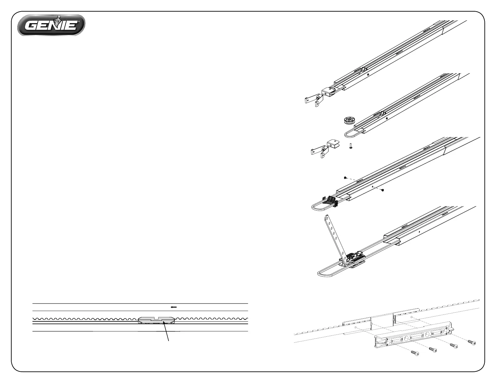 En surplombant le dessous du rail (courroie visible), placez-vous de sorte que le côté porte (poulie) se