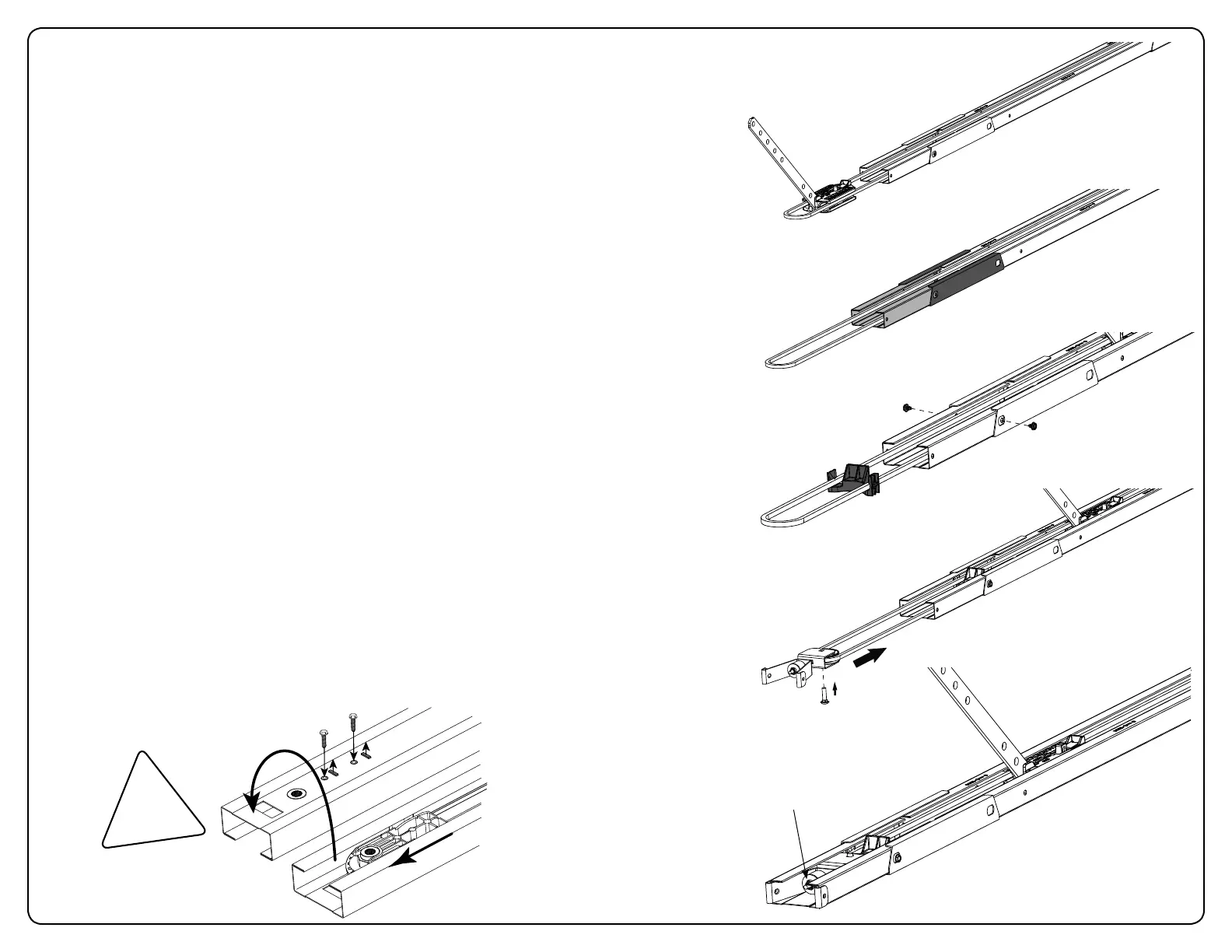 13. Deslice el ensamblaje de la polea dentro del riel hasta que se enganche sobre los bordes del