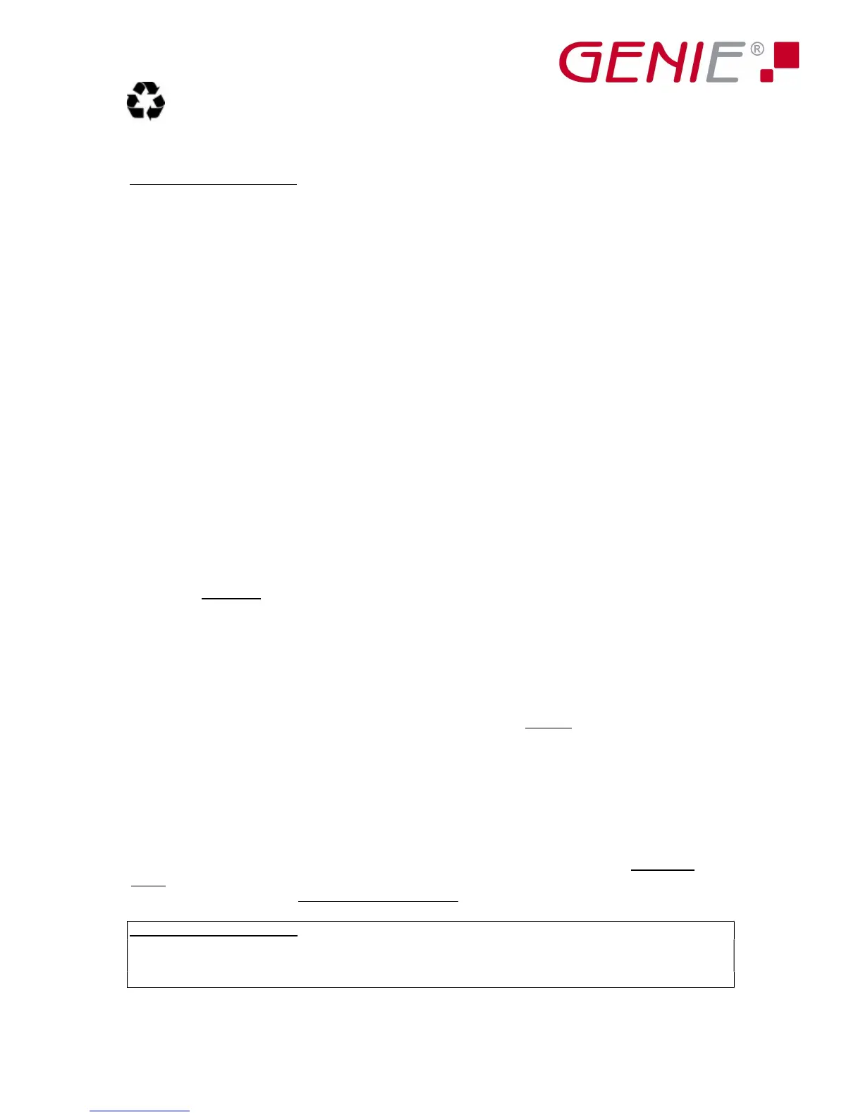 Nous vous remercions d’avoir choisi ce produit de la marque GENIE. Si, contre toute attente,