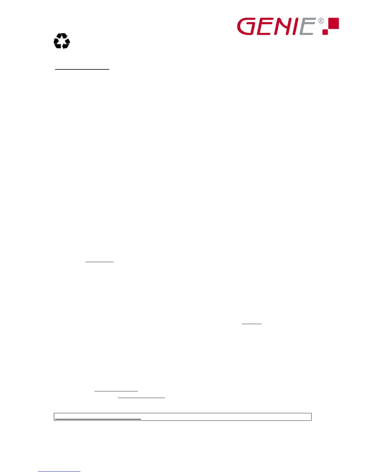 La ringraziamo per aver acquistato questo prodotto GENIE. Qualora si verificassero anomalie nel
