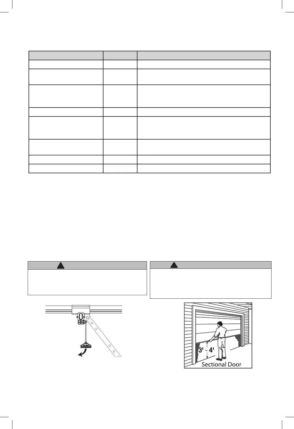 • Raise and lower the door manually. Door should move freely and smoothly.