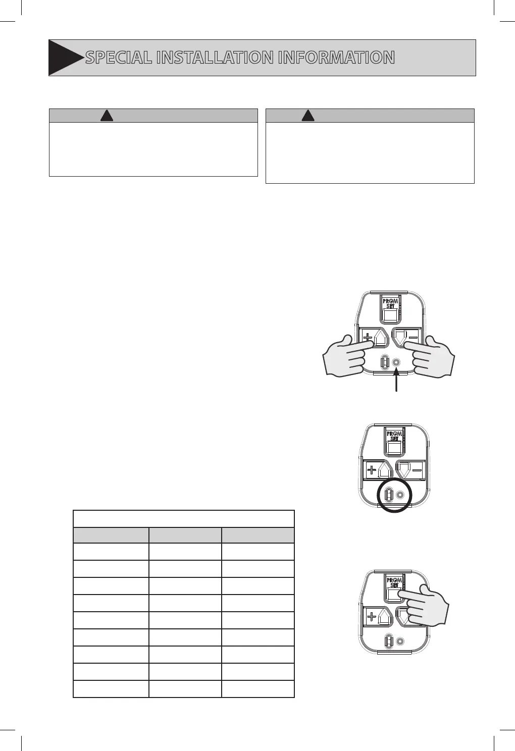 SPECIAL INSTALLATION INFORMATION
