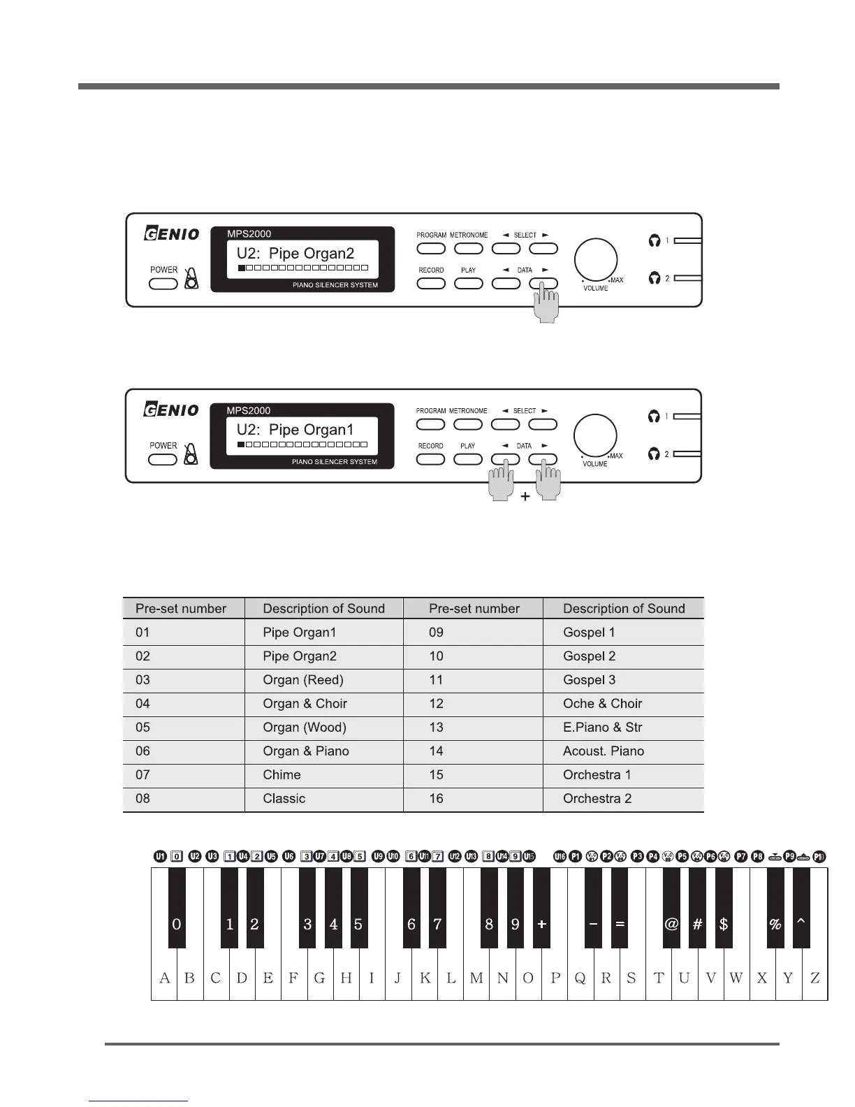 󳢯 U1: Pipe Organ 1 is default sounds when turn the MPS2000 on.