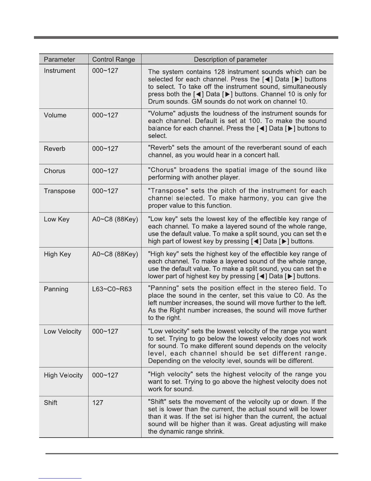 Functions of Parameter settings in EDIT mode