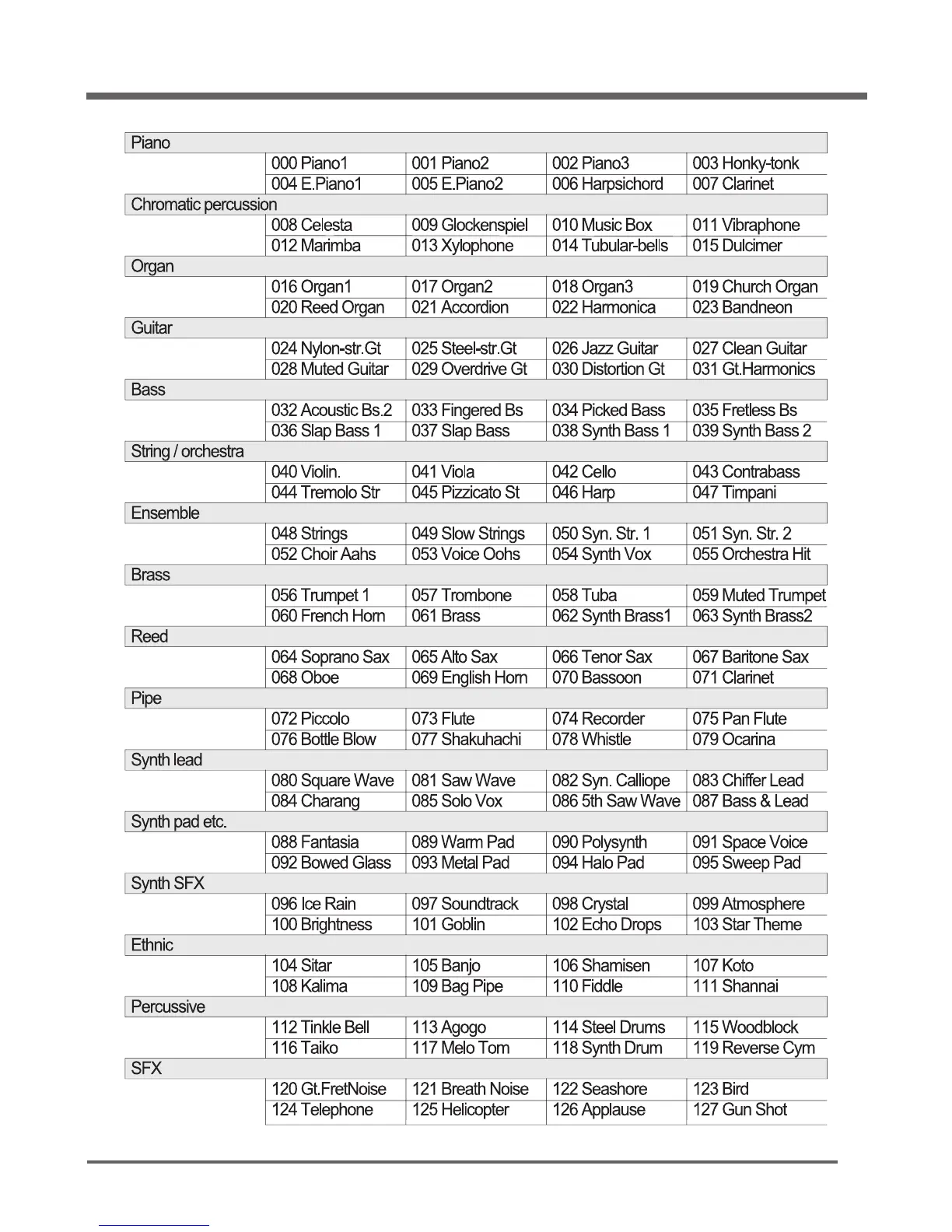 Genio MPS2000 - General MIDI Program map