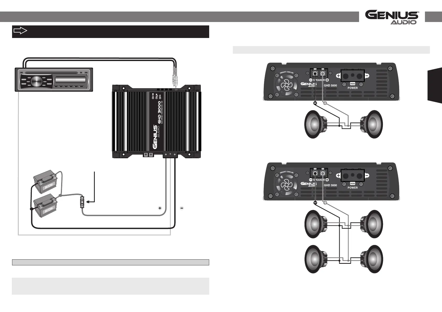 (positivo y negativo de la batería) y de los altavoces, así como la impedancia