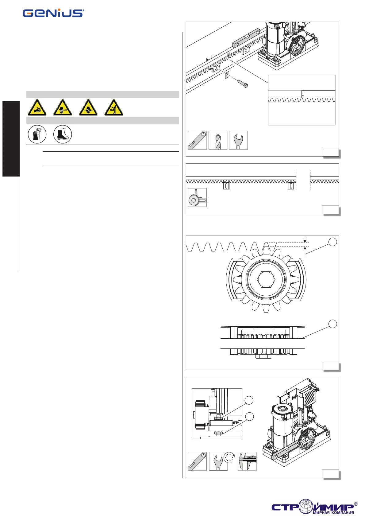 1. When you have installed the rack, lower the gear mo-