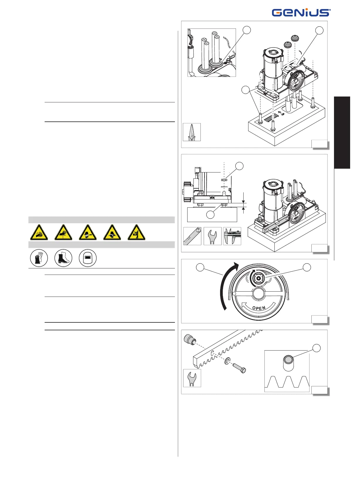 7. Use a spirit level to check that the gear motor is horizontal (14):
