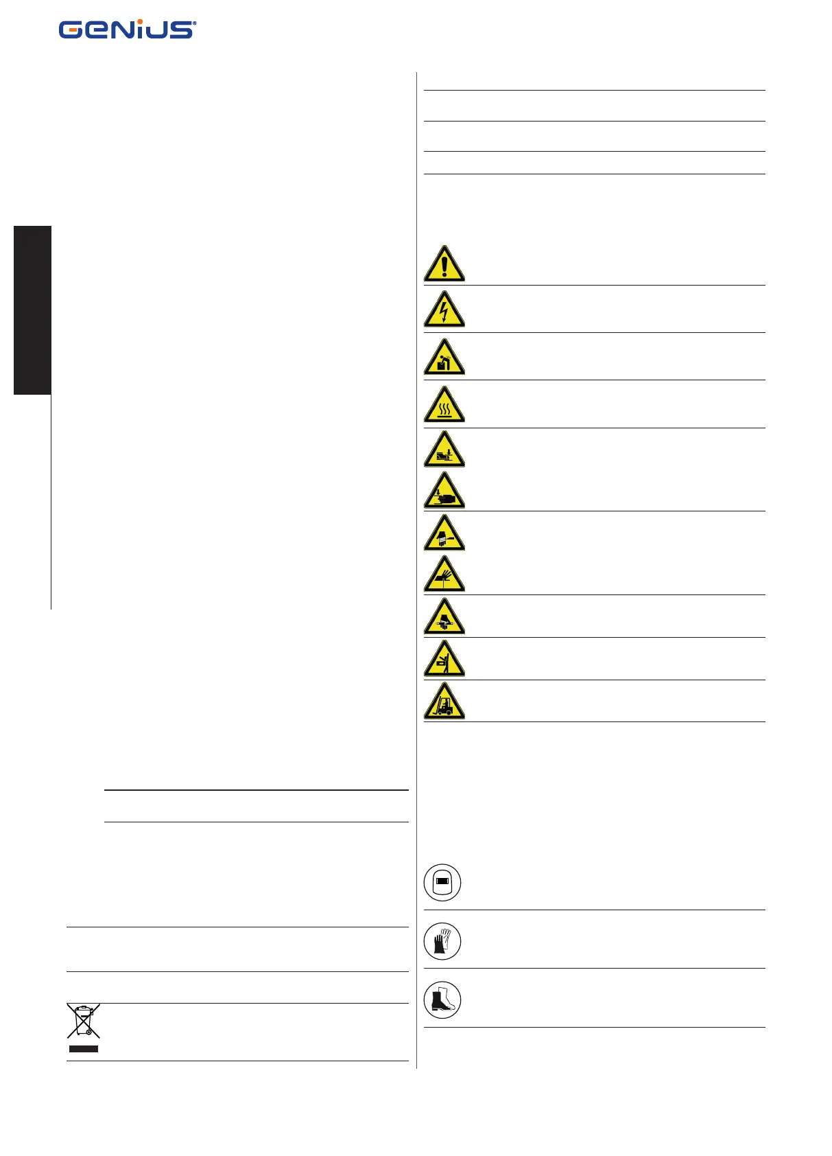 Risk of crushing to the hands/feet due to the presence of heavy parts.