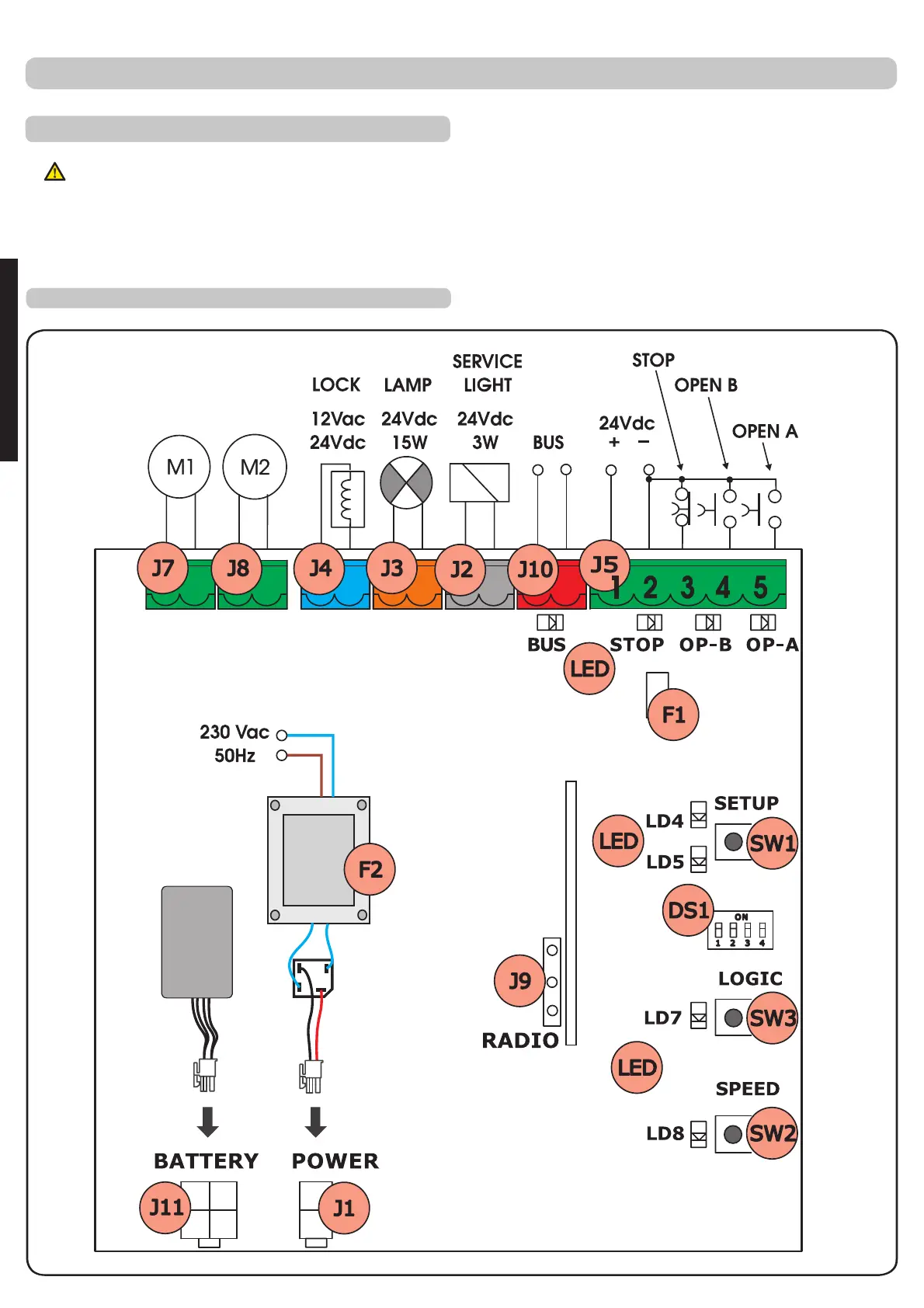 Before attempting any work on the control unit (connections, maintenance), always turn off power.