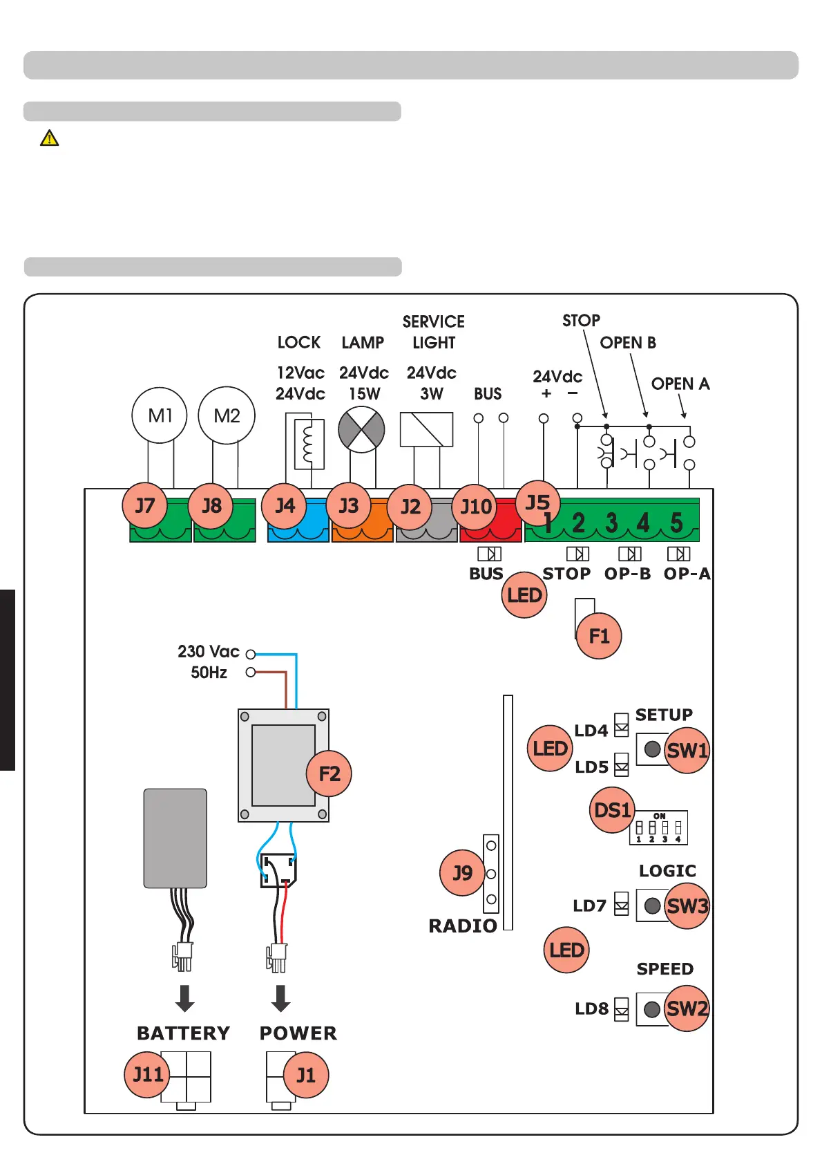 - Separe siempre los cables de alimentación de los cables de mando y de seguridad (pulsador, receptor, fotocélulas, etc).