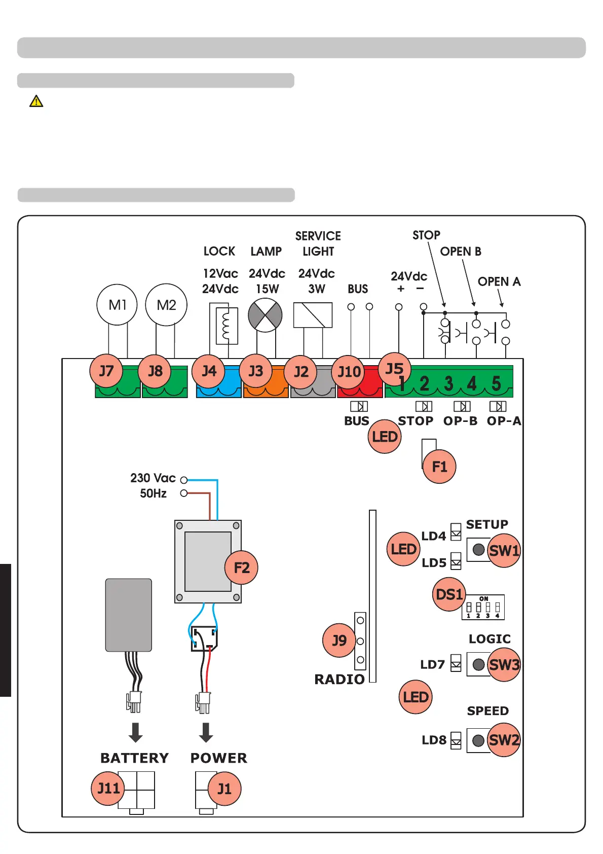 - Die Versorgungskabel stets von den Steuer- und Sicherheitskabeln (Taste, Empfänger, Fotozellen usw.) trennen.