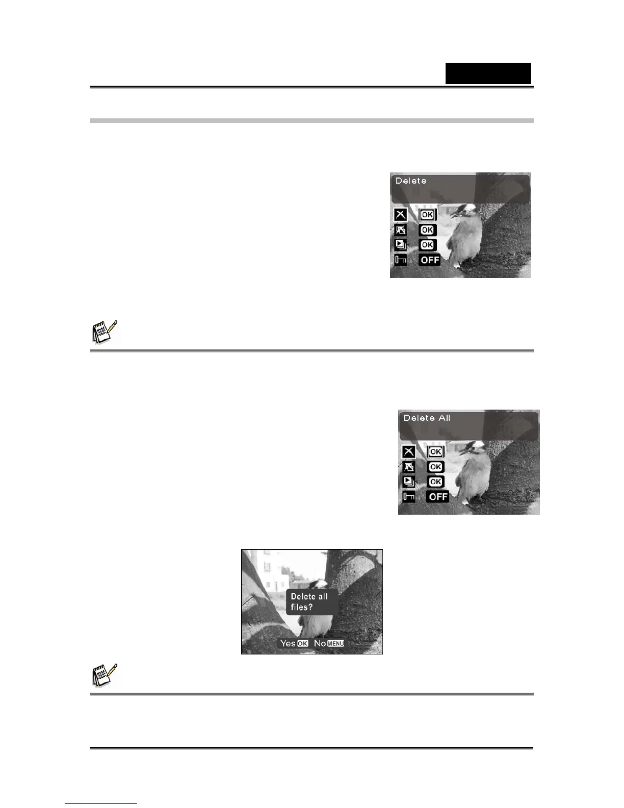 4. Press OK/Set button to delete. A dialog