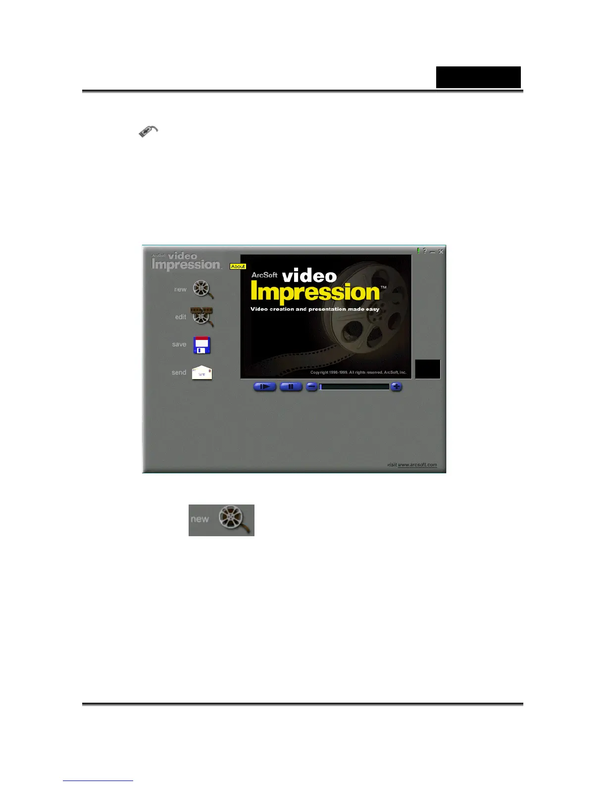 select Programs > ArcSoft VideoImpression > VideoImpression. The following