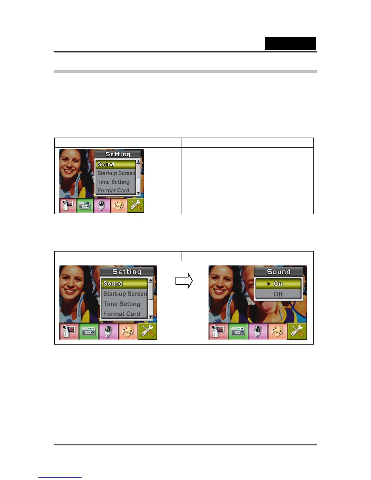 2. Use Right/Left Buttons to move to Setting option, then Setting Submenu will pop