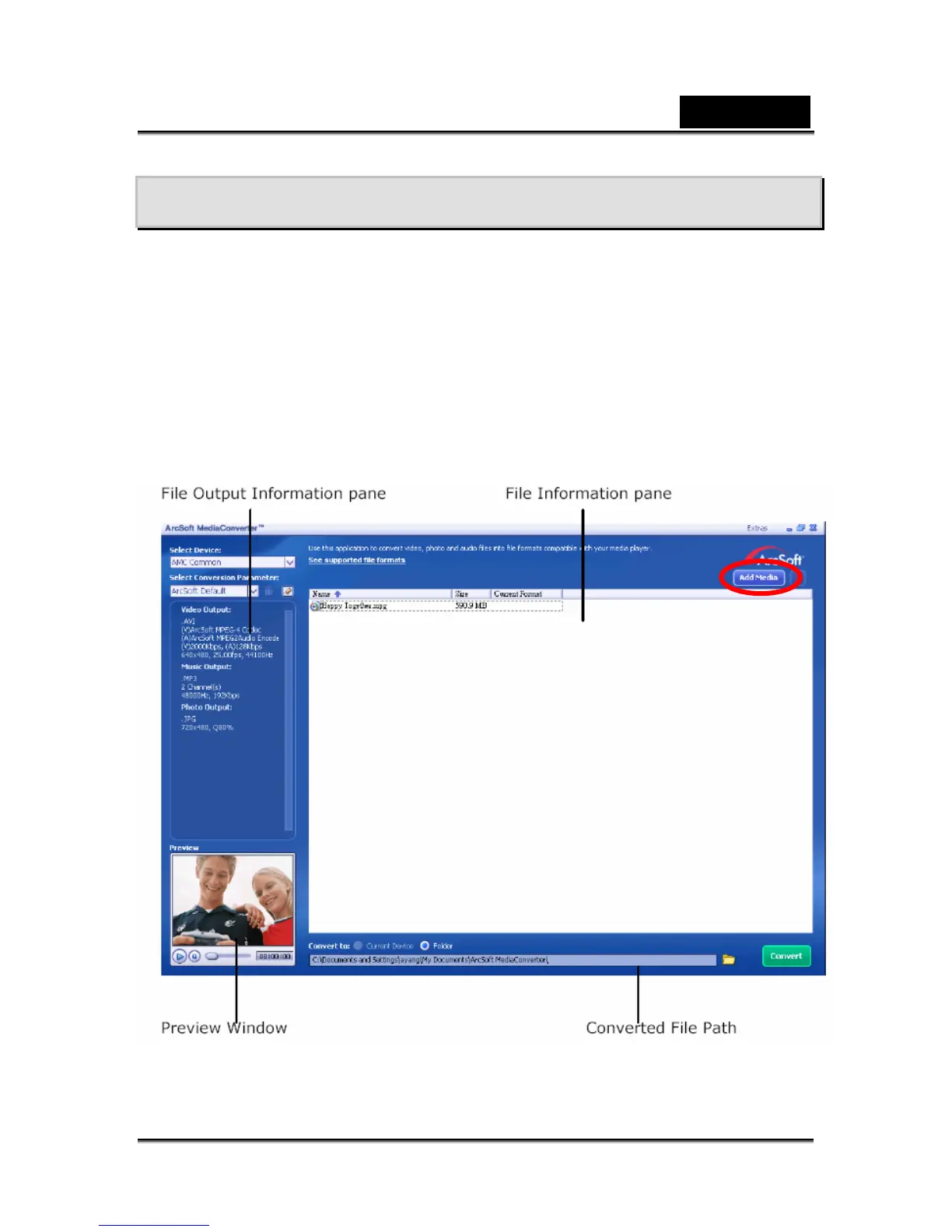 Bundled software CD contains Arcsoft Media Converter that features a video file