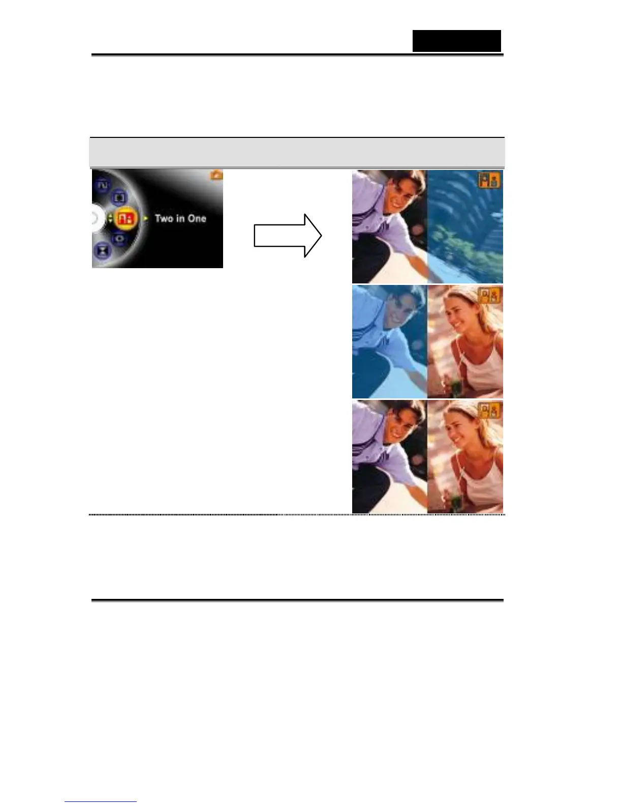 With Digital Video Digital Video Camera set to Two in One mode, you can combine