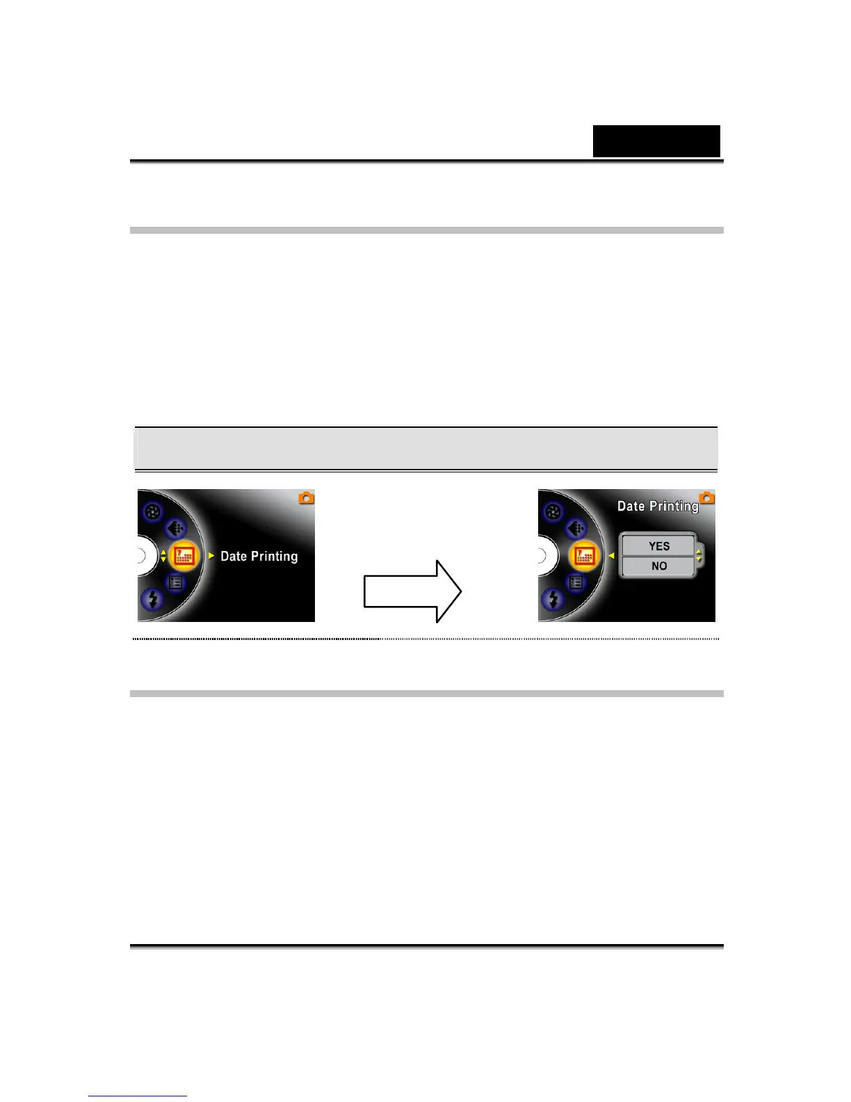 switch to Date Printing submenu.